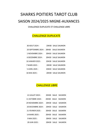 PALMARES DU CHALLENGE LIBRE